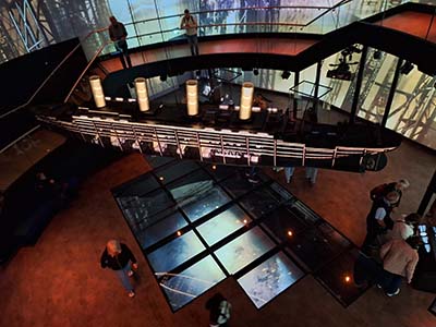 | The Titanic Belfast exhibit was built on the site of the former Harland & Wolff shipyard where the Titanic was constructed. The original slipways (ramps to launch ships) and graving docks (dry docks) remain. |