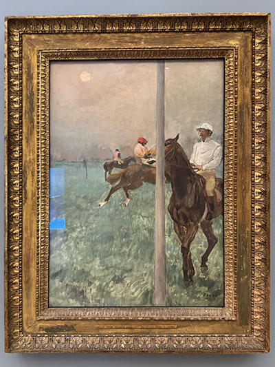 Jockeys Before The Race by Edgar Degas, 1879, was inspired by Eadweard Muybridge’s attempts to capture motion in still images, Degas used stop-action photographs to capture movement in his horse racing scenes. |