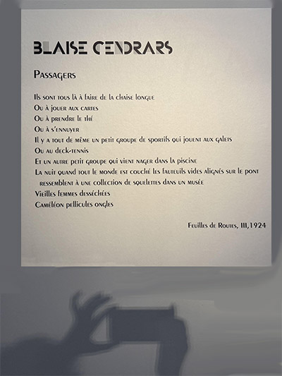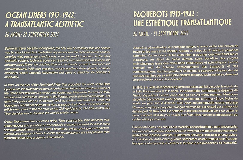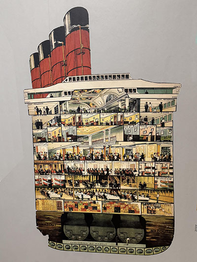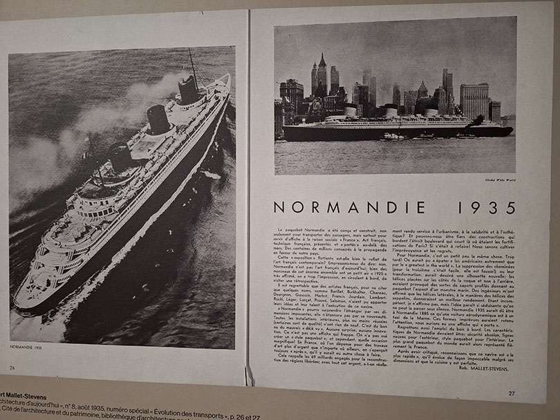 | We were so lucky that MuMa (Musée d’art moderne André Malraux) had an exhibit on ocean liners! It was from the collection of French Lines & Compagnies, an association which preserves, promotes and enhances the history and heritage of Compagnie Générale Transatlantique, Compagnie des Messageries Maritimes, Compagnie Générale Maritime and Société Nationale Corse-Méditerranée. |