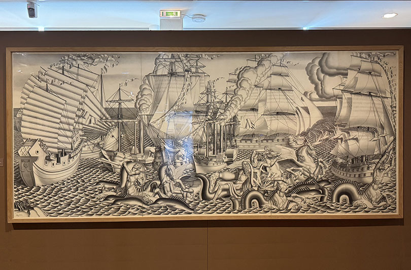 | Final preparatory drawing for The Chariot of Poseidon, part of Jean Dupas’s most famous work—the four hundred square meters of glass mural decoration installed in the Grand Salon of the Normandie. | ||