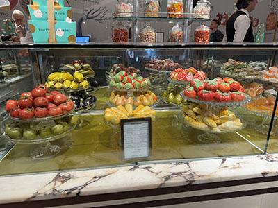 Rowley's steakhouse on Jermyn Street opened 49-years ago. We ordered delish fish. Our waiter was American.   Fortnum and Mason's marzipan fruits wree fetching but we only bought teas and ginger biscuits.