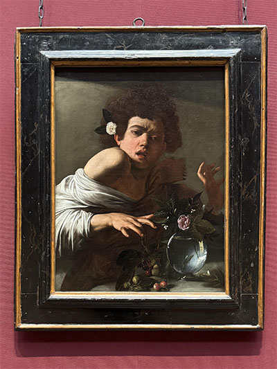| Boy Bitten by a Lizard by Caravaggi, probably painted in Rome in the 1590s. It was very unusual then for a painting to show such a moment of action, but Caravaggio rejected artistic convention and painted directly onto the canvas from live models. This gave his works an immediacy and intensity that made them instantly popular. |