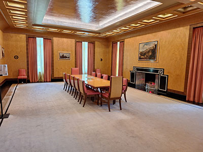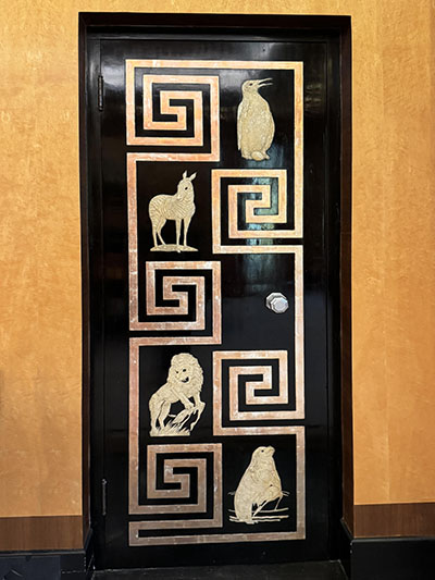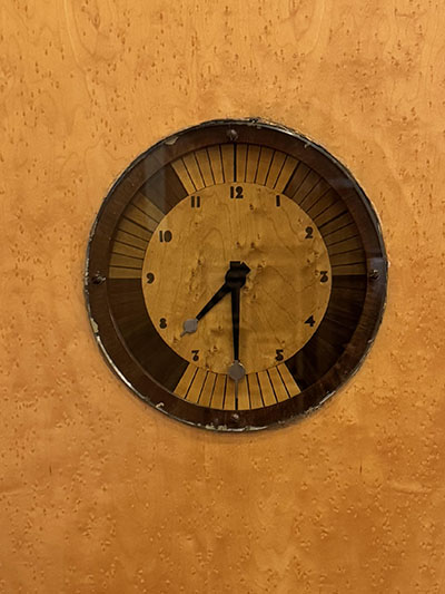 | The doors of the Art Deco dining room feature animals and birds drawn from life at the London Zoo | The Courtaulds took advantage of new technology. The built-in clocks were synchronized. | |||